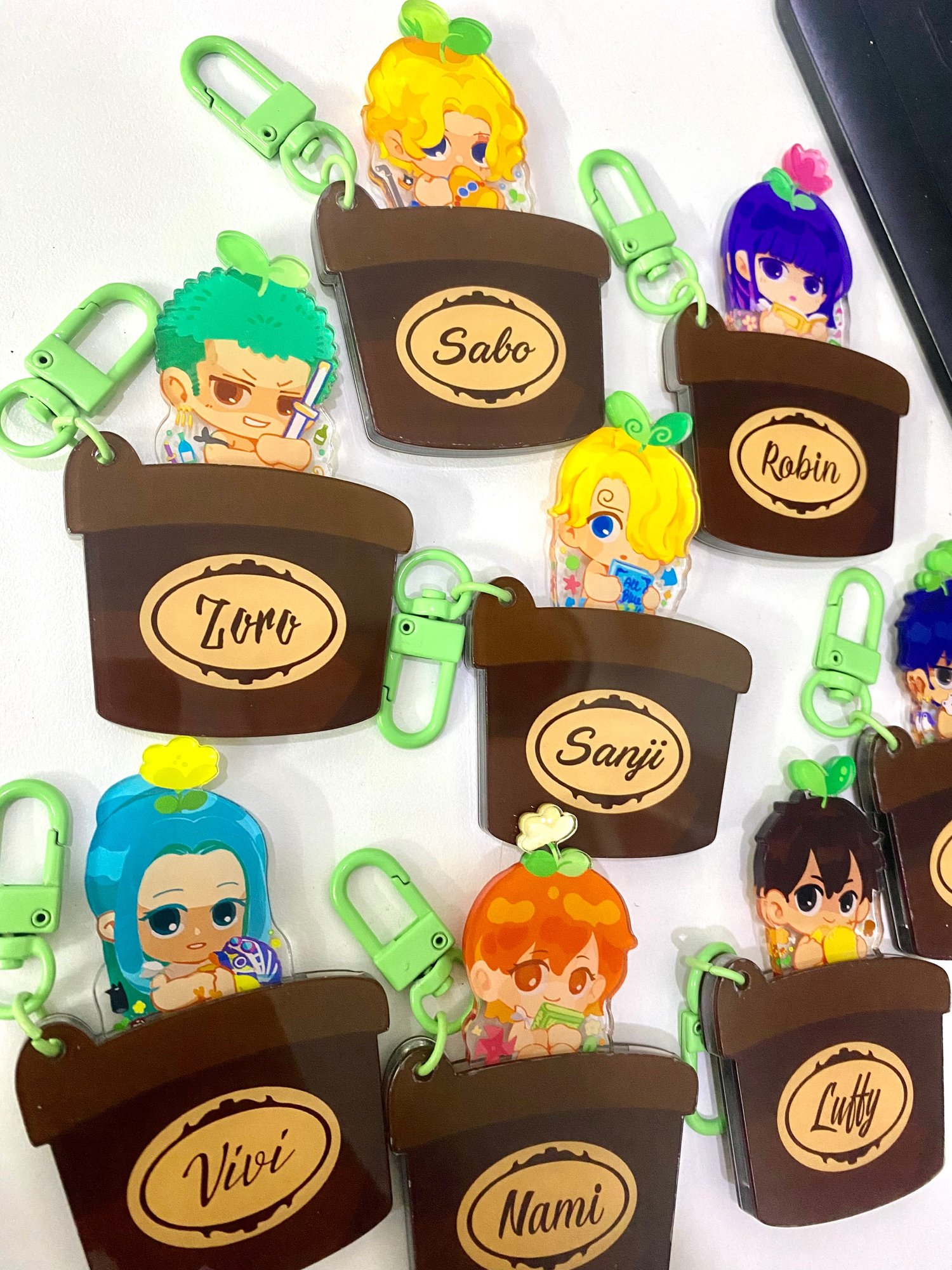 Acrylic keychain, special effect with the character can raise up from the pot.
